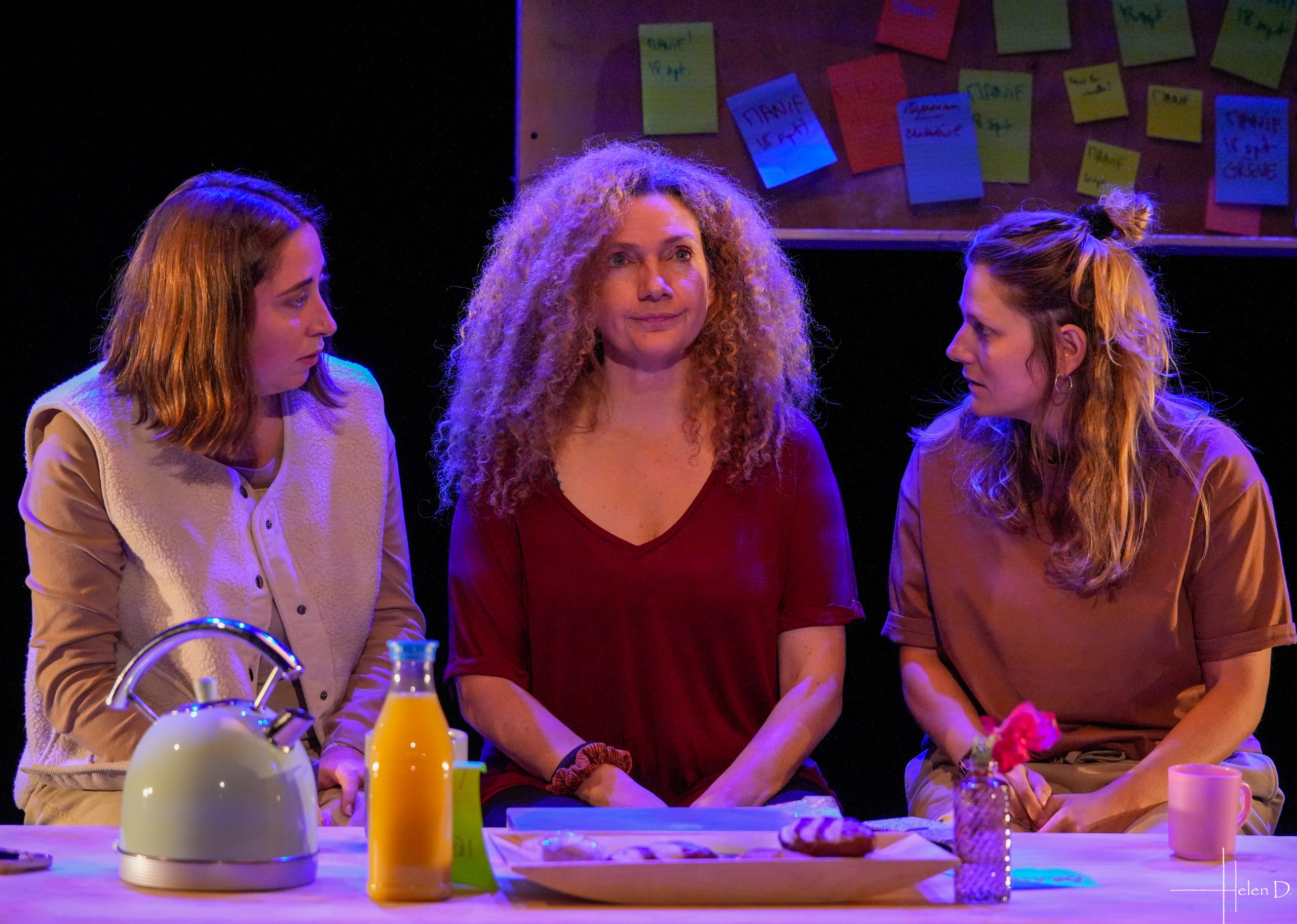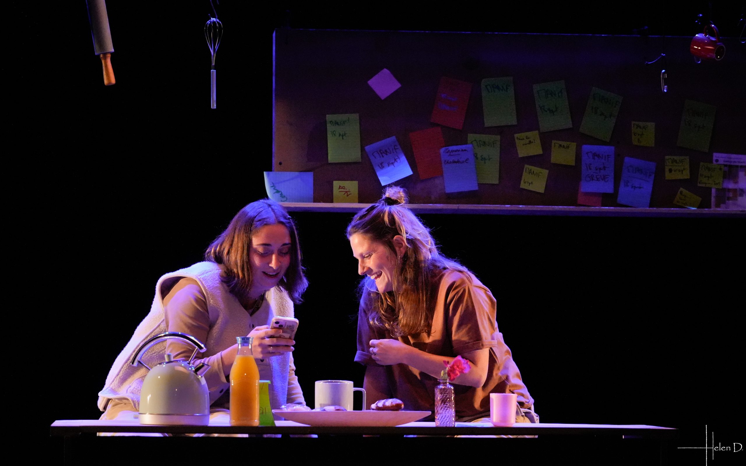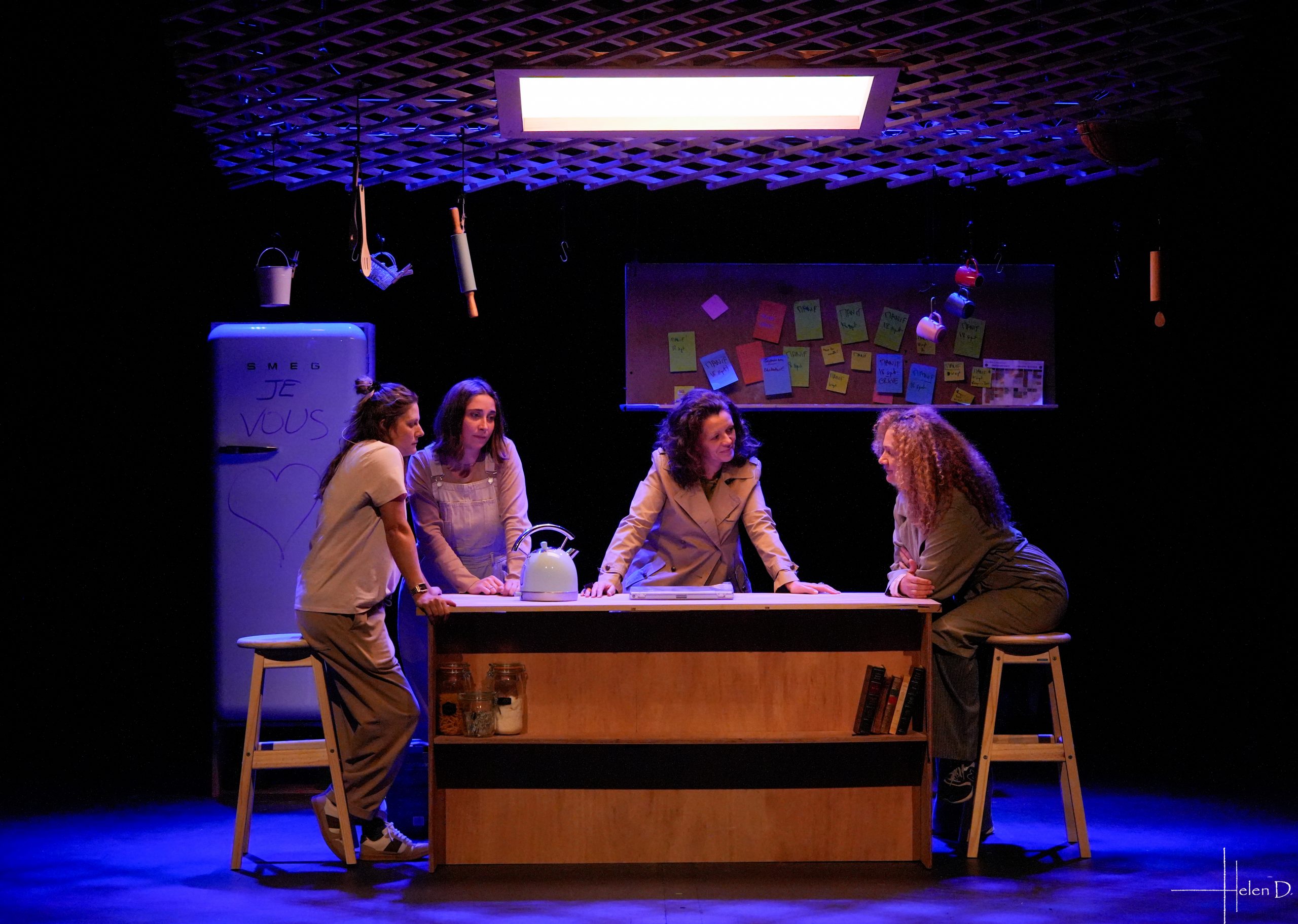 Les bouleversements sociétaux, les différends générationnels, la transmission, la communication et la ménopause sont des thèmes abordés en une succession de tranches de vie qui se déroulent comme une pâte feuilletée dans une cuisine, lieu d’échange, de réflexion, de travail, de rire, de pleurs, d’engueulades, de déclarations d’amour.