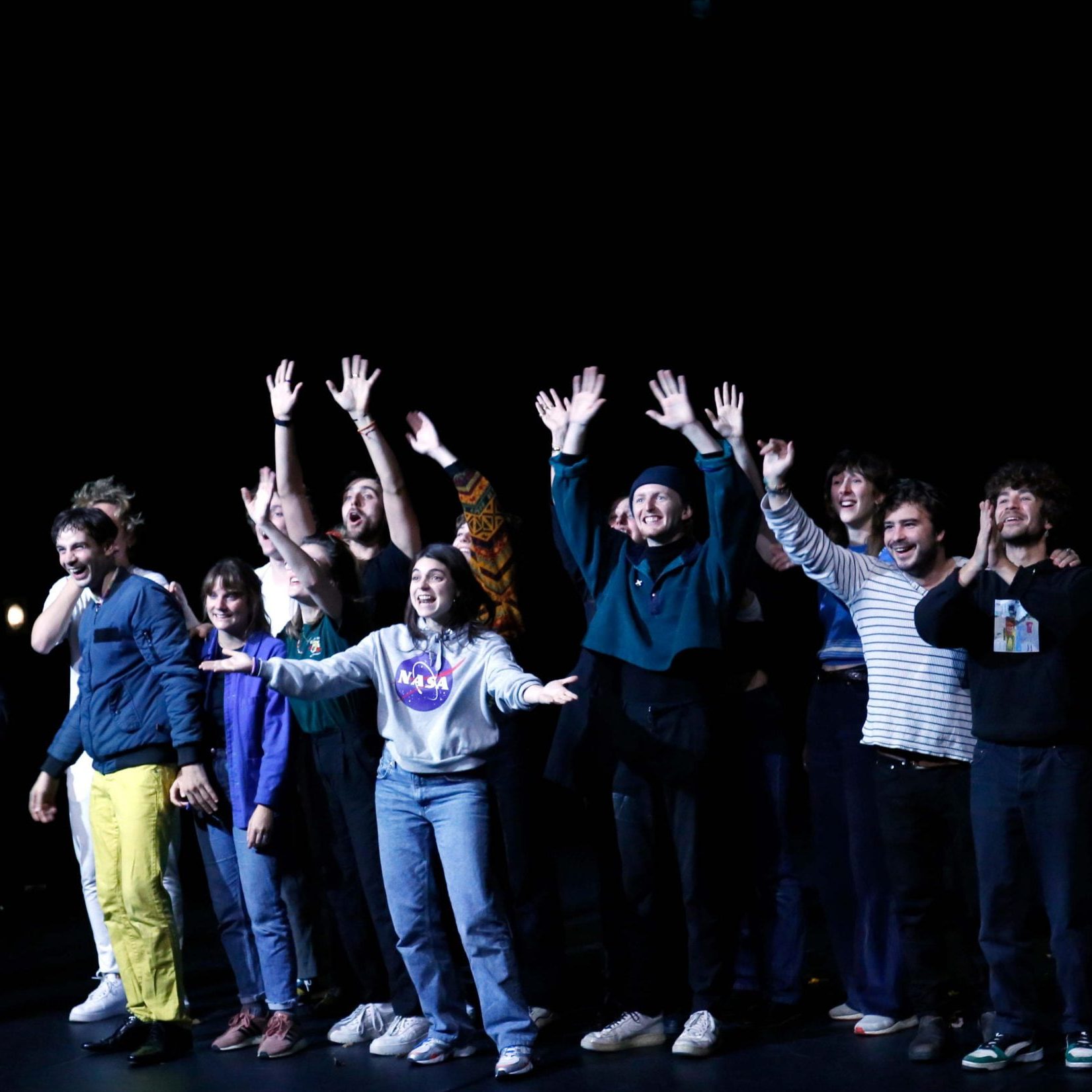 « Nous sommes 20 personnes au plateau, cette force du nombre raconte qui nous sommes et comment nous travaillons. Pas de décors, pas de scénographie, nous faisons avec ce que l’on trouve dans les lieux qui nous accueillent. Nous avons présenté cette pièce en clôture des festivals : Les “48h Au Sel” et les “48h Sauvage” respectivement en Décembre et Août 2021. »
