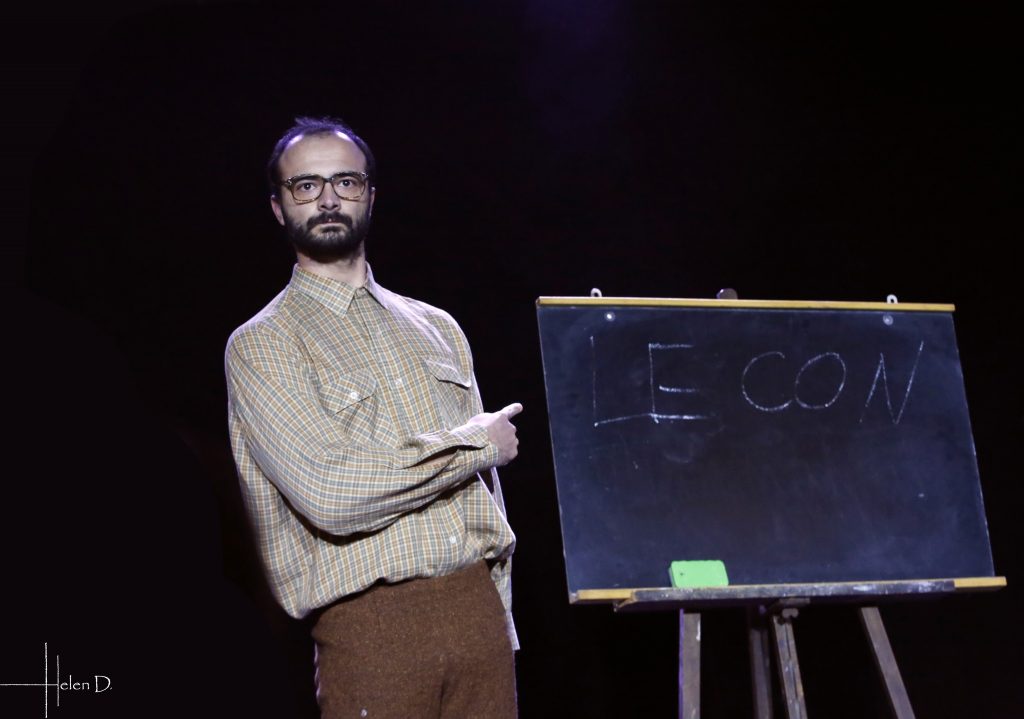 Les étoiles y ont disparu du ciel à cause de la pollution lumineuse. Mais ce matin la radio annonce une grande nouvelle : l’étoile du Berger sera exceptionnellement visible à la nuit tombée. Commence alors pour notre professeur une quête, semée d’embûches et de rencontres plus ou moins heureuses. Il affrontera une classe d’élèves (le public) pas aussi passionnés d’histoire que lui, une ville hostile de sons et lumières qu’il devra traverser pour trouver le poste d’observation idéal. Mais de nouvelles épreuves attendent notre héros qui devra lutter contre lui-même et ne pas renoncer pour apercevoir enfin cette “inaccessible étoile” que Brel chante si puissamment dans “l’Homme de la Mancha”.